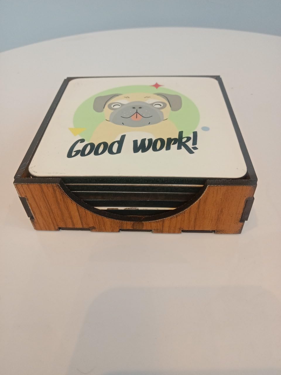 Wooden Tea Coasters Set of 6 I Dog Themed Office-Home-Gift I Desktop Item (Square)Wooden Tea Coasters Set of 6 I Dog Themed Office-Home-Gift I Desktop Item (Square)